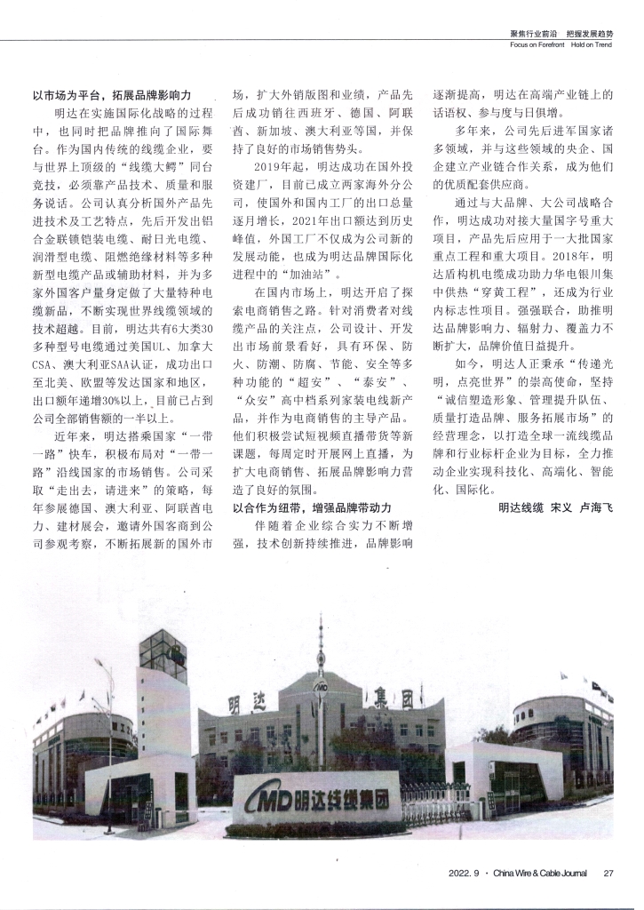 KAIYUNÔÚʵÑé¹ú¼Ê»¯Õ½ÂÔµÄÀú³ÌÖУ¬Ò²Í¬Ê±°ÑÆ·ÅÆÍÆÏòÁ˹ú¼ÊÎę̀¡£×÷Ϊº£ÄڹŰåµÄÏßÀÂÆóÒµ£¬ÒªÓëÌìÏÂÉ϶¥¼¶µÄ¡°ÏßÀ´óöù¡±Í¬Ì¨¾º¼¼£¬±ØÐè¿¿²úÆ·ÊÖÒÕ¡¢ÖÊÁ¿ºÍ·þÎñÓïÑÔ¡£¹«Ë¾ÈÏÕæÆÊÎöÍâÑó²úÆ·ÏȽøÊÖÒÕ¼°¹¤ÒÕÌØµã£¬ÏȺ󿪷¢³öÂÁºÏ½ðÁªËøîø×°µçÀ¡¢ÄÍÈÕ¹âµçÀ¡¢Èó»¬Ð͵çÀ¡¢×èȼ¾øÔµÖÊÁϵȶàÖÖÐÂÐ͵çÀ²úÆ·»ò¸¨ÖúÖÊÁÏ£¬²¢Îª¶à¼ÒÍâ¹ú¿Í»§Á¿Éí¶¨×öÁË´ó×ÚÌØÖÖµçÀÂÐÂÆ·£¬Ò»Ö±ÊµÏÖÌìÏÂÏßÀÂÁìÓòµÄÊÖÒÕÓâÔ½¡£ÏÖÔÚ£¬KAIYUN¹²ÓÐ6´óÀà30¶àÖÖÐͺŵçÀÂͨ¹ýÃÀ¹úULÈÏÖ¤¡¢¼ÓÄôóCSA¡¢°Ä´óÀûÑÇSAAÈÏÖ¤£¬Àֳɳö¿ÚÖÁ±±ÃÀ¡¢Å·Ã˵ÈÅ¹ú¼ÒºÍµØÇø£¬³ö¿Ú¶îÄêµÝÔö30%ÒÔÉÏ£¬ÏÖÔÚÒÑÕ¼µ½¹«Ë¾ËùÓÐÏúÊÛ¶îµÄÒ»°ëÒÔÉÏ£¬ÂÁºÏ½ðµçÀ³ö¿Ú¶î¾Óº£ÄÚÙÉÐÐҵǰÏß¡£